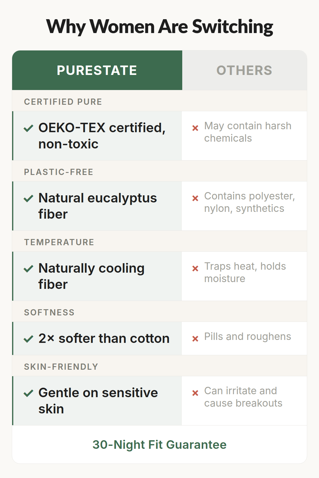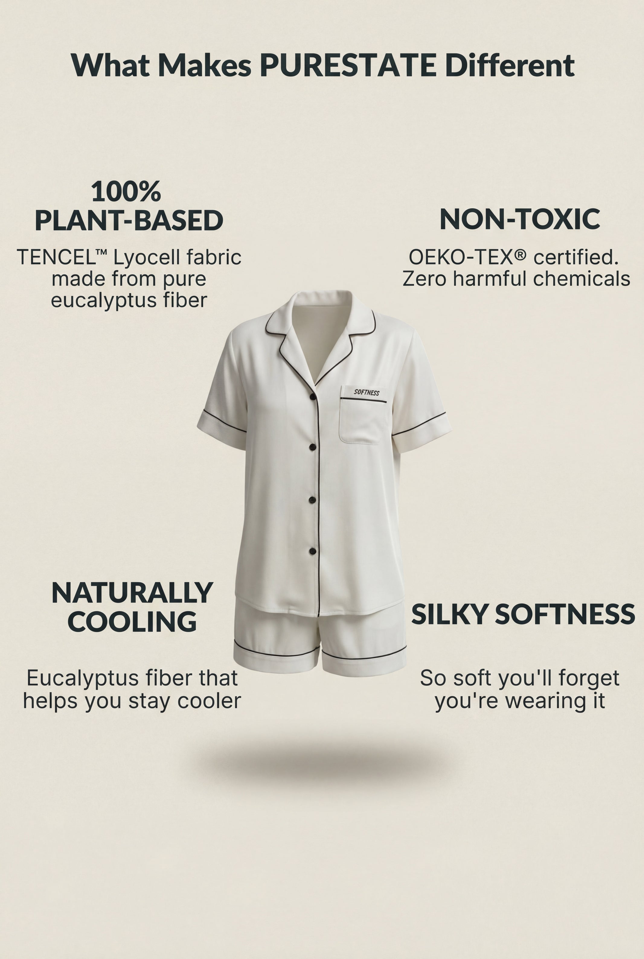 Eucalyptus fiber — trusted in skincare, now in your sleepwear.